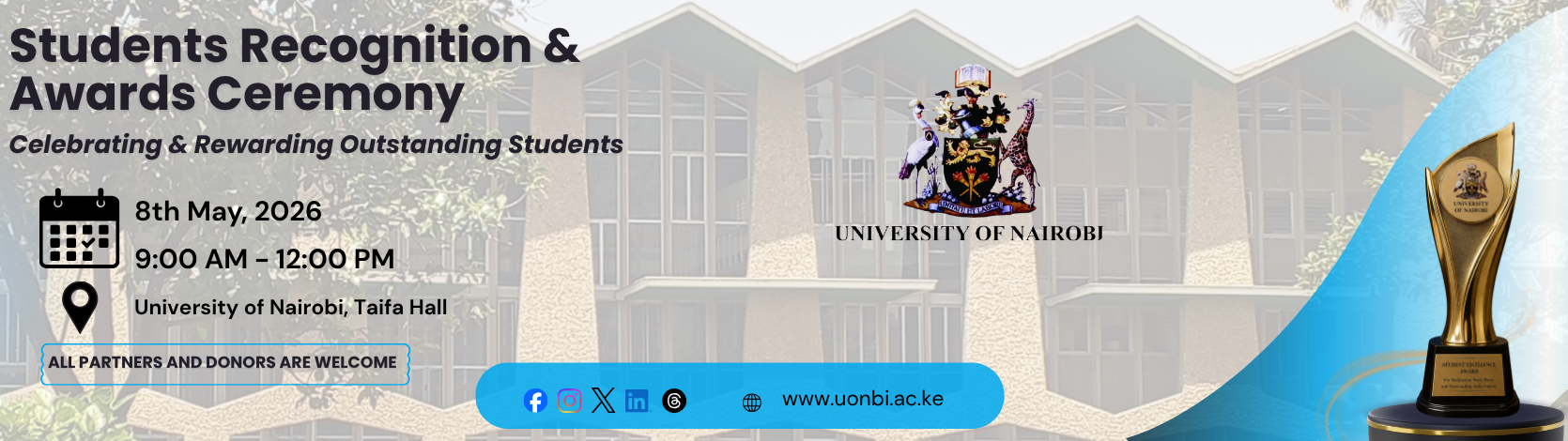 The University of Nairobi is hosting its prestigious Students Recognition and Awards Ceremony. This event is dedicated to "Celebrating and Rewarding Outstanding Students" who have demonstrated excellence in their academic and extracurricular pursuits.